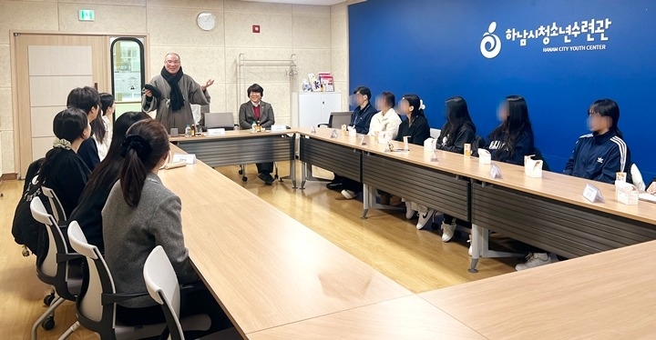 광덕사 지정스님은 지난 23일 하남시청소년수련관을 방문해 조재영 관장, 청소년 관장, 꿈드림 학생, 청소년지도사 등과 함께 학교 밖 청소년의 현실과 과제, 지원 방안에 대해 허심탄회하게 의견을 나누는 시간을 가졌다.