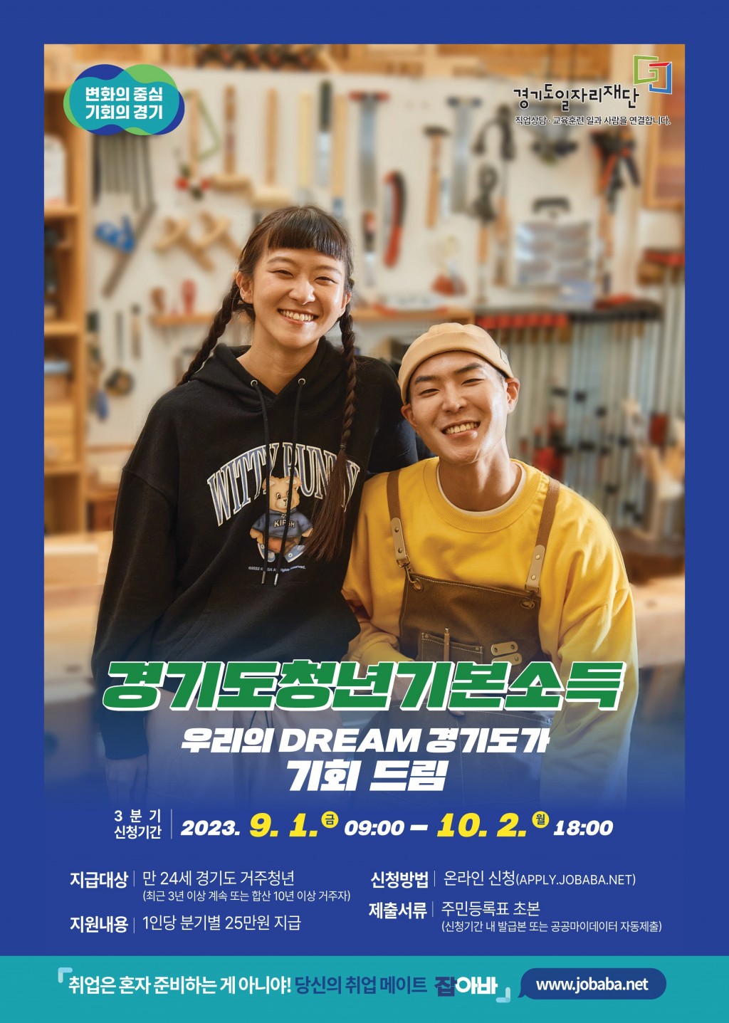 신청방법은 경기도 일자리플랫폼 잡아바(apply.jobaba.net)에서 온라인 또는 모바일로 다음달 2일까지 신청하면 된다. 기존 수령자 중 자동 신청에 동의한 대상자는 별도 신청 없이 매 분기 자동으로 신청된다.