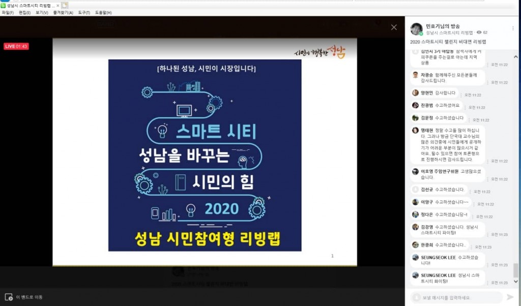 이 날 은 시장은 “국내 최초로 비대면 온라인 방식의 리빙랩 추진으로 사회적 거리를 유지하면서도 더 가깝게 소통할 수 있는 새로운 방법을 찾게 되었다”며,