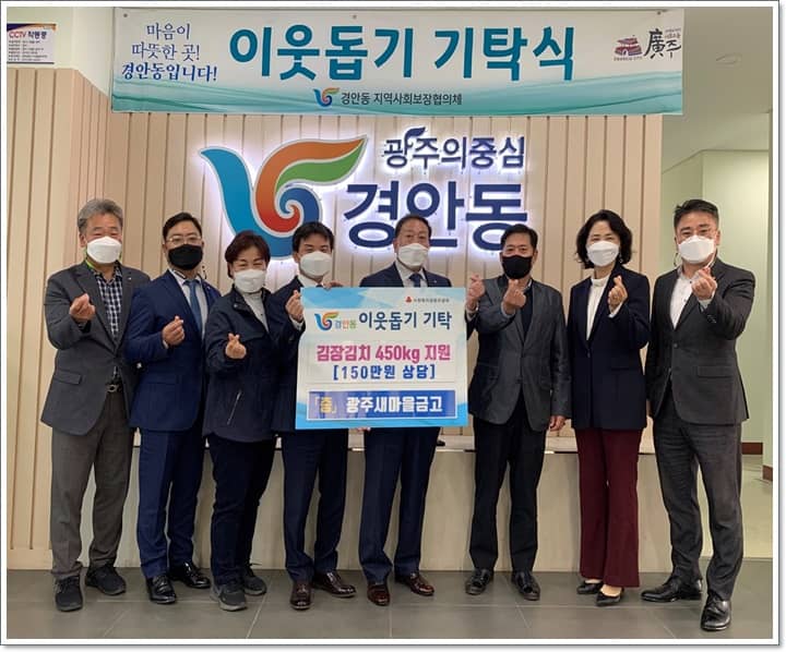 MG광주새마을금고는 지난 3일 경안동 행정복지센터를 방문, 관내 취약계층에게 전달해 달라며 김치 450㎏(150만원 상당)을 기탁했다.
