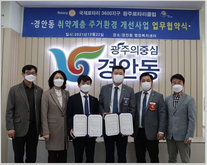 광주시 경안동은 지난 22일 경안동 행정복지센터에서 국제로타리 3600지구 소속 광주로타리클럽과 취약계층의 주거환경 개선을 위한 협약(MOU)을 체결했다.