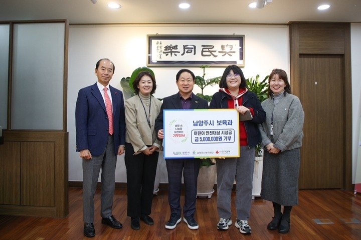 [굿타임즈24/남양주시] 박하용 기자 = 남양주시는 5일 시장 집무실에서 ‘제15회 어린이 안전대상’ 대통령상 수상으로 받은 시상금 500만 원을 관내 아동 복지사업에 활용하기 위해 남양주시복지재단에 지정 기부하는 전달식을 열었다.